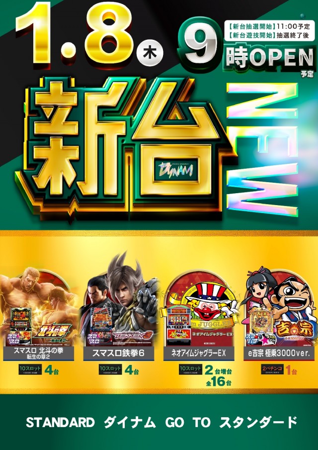 1月8日(木)新台入替(予定)
