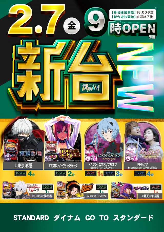 明日2月13日(木)新台入替!