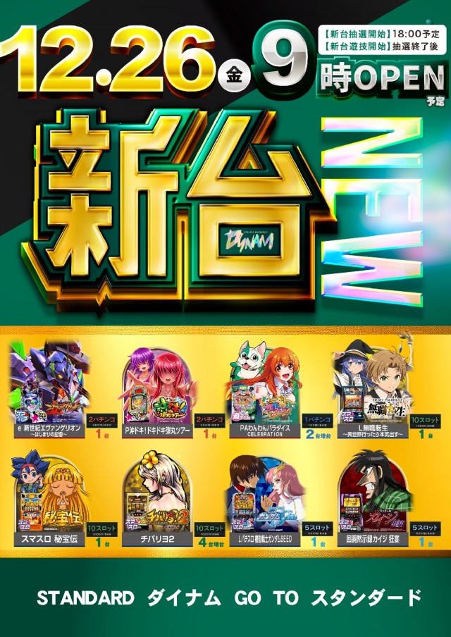 明日12月26日(木)新台入替!