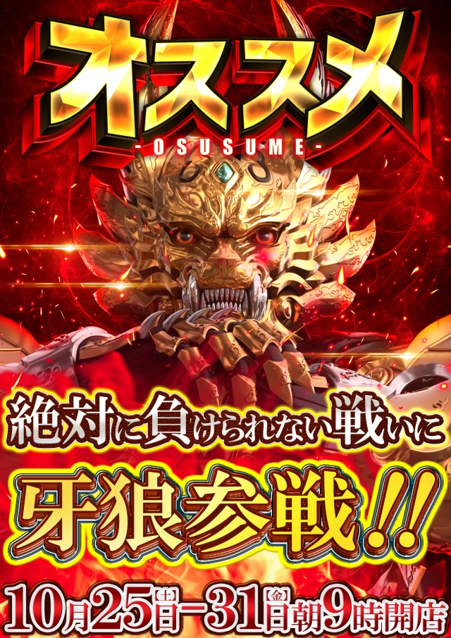 10月26日 牙狼参戦!!朝9時開店!!総付景品配布!!