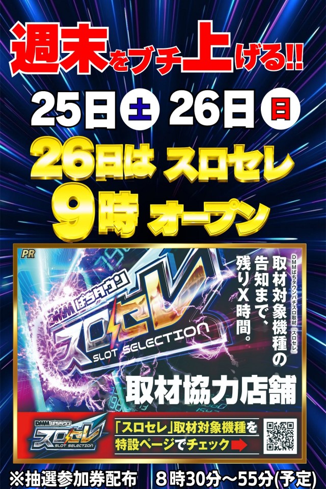 2025/10/26週末をブチ上げる!本日スロセレ同時開催!ぜひお越しください!