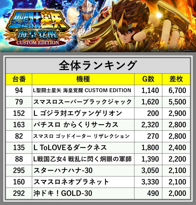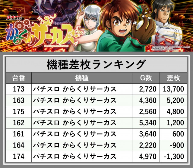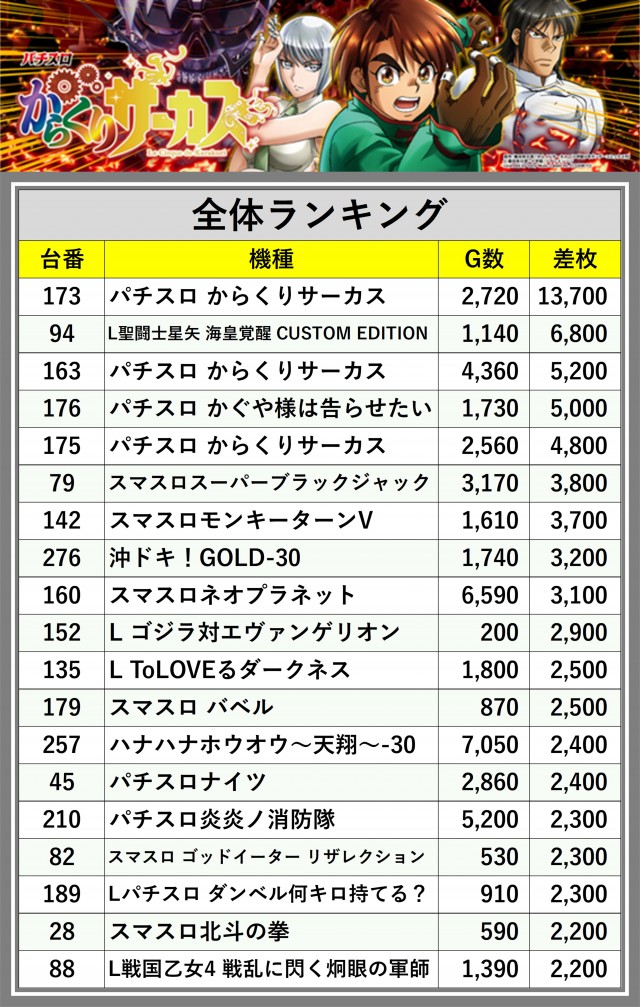 ※差枚数順に掲載しています