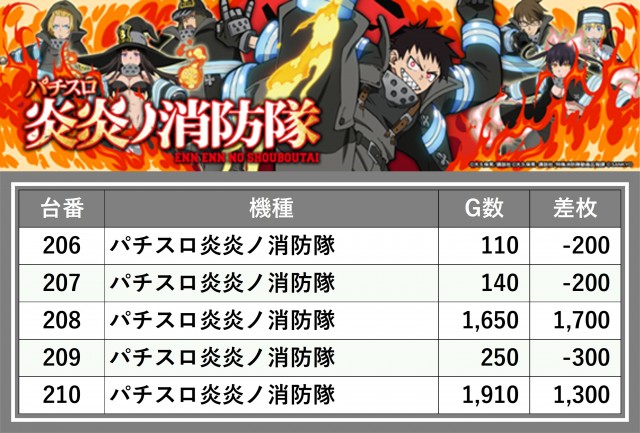 ※台番順に掲載しています