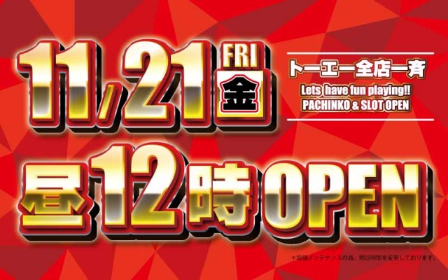 【トーエーグループ全店】11月21日12時OPEN!!