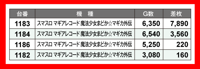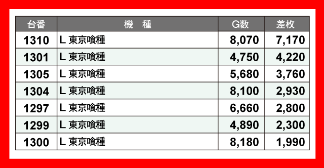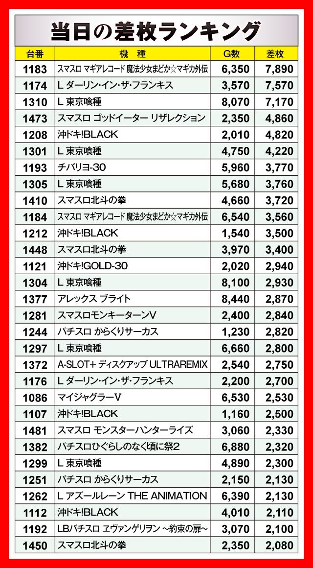 当日の差枚ランキング