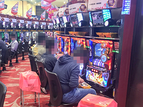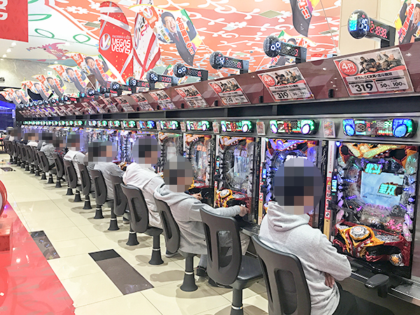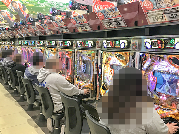 取材時の店内には既に多くのプレイヤーが集結し、パチンコ・パチスロを問わずにぎやかな状況となっていた。