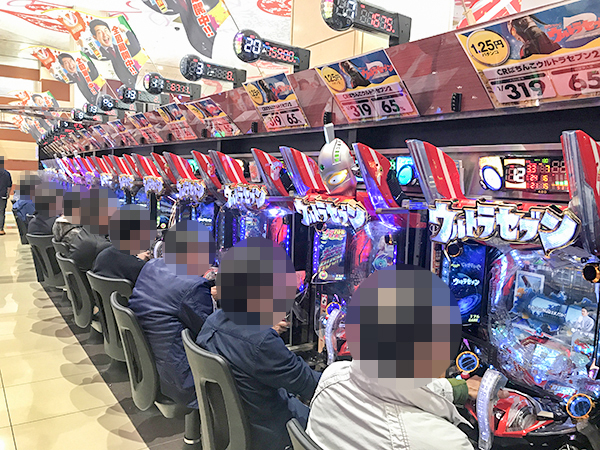 1.25円パチンコでは、「CRぱちんこウルトラセブン2」がほぼ満席となるほどの人気を集めており、シマ全体がプレイヤーの活気であふれていた。