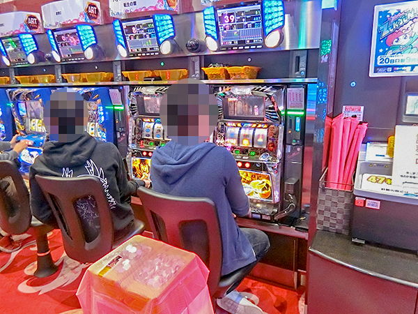 「CR大海物語4 BLACK」や「CR牙狼GOLDSTORM翔」の盛り上がりも大きい。各シマには微笑ましい光景が広がっていた。