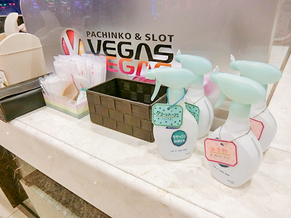 同店は消臭スプレー・おしぼり・綿棒など、アメニティグッズが充実。プレイヤーたちが気持ちよく遊技を楽しめる環境が整っていた。
