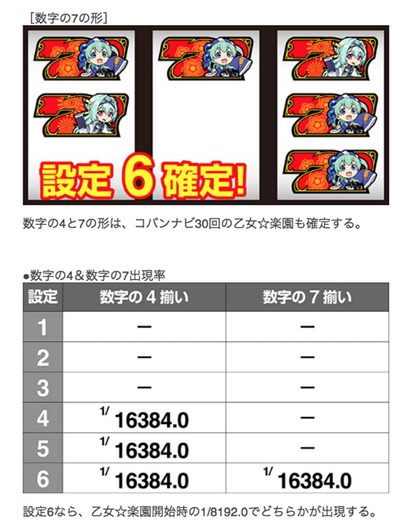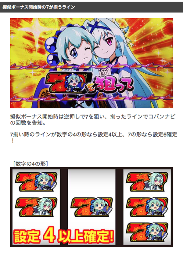 また、擬似ボーナス開始時に揃える7の形には、高設定濃厚パターンが存在する。