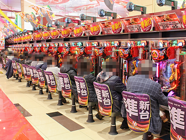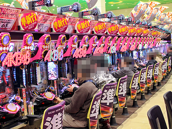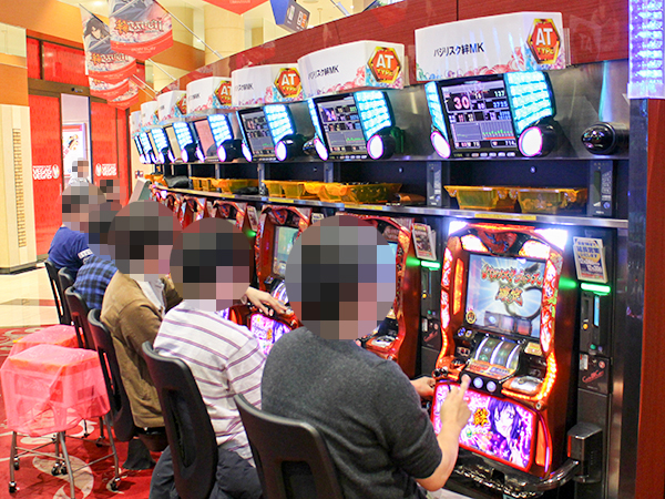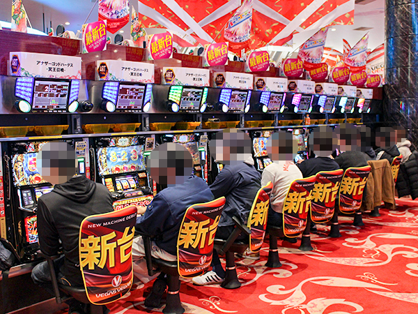 取材時の店内には既に多くのプレイヤーが集結し、パチンコ・パチスロを問わず明るい雰囲気に包まれていた。