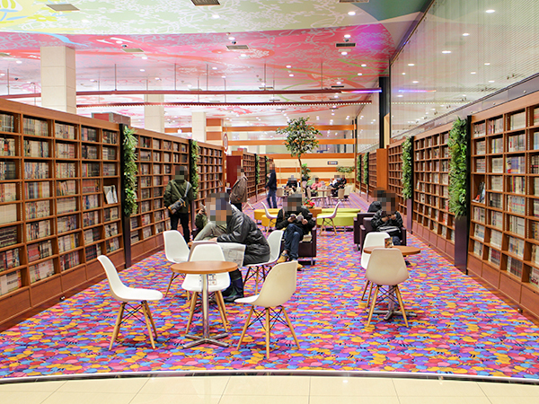 レストスペースには幅広いジャンルの漫画本が用意されており、取材時も満喫するプレイヤーが多かった。
