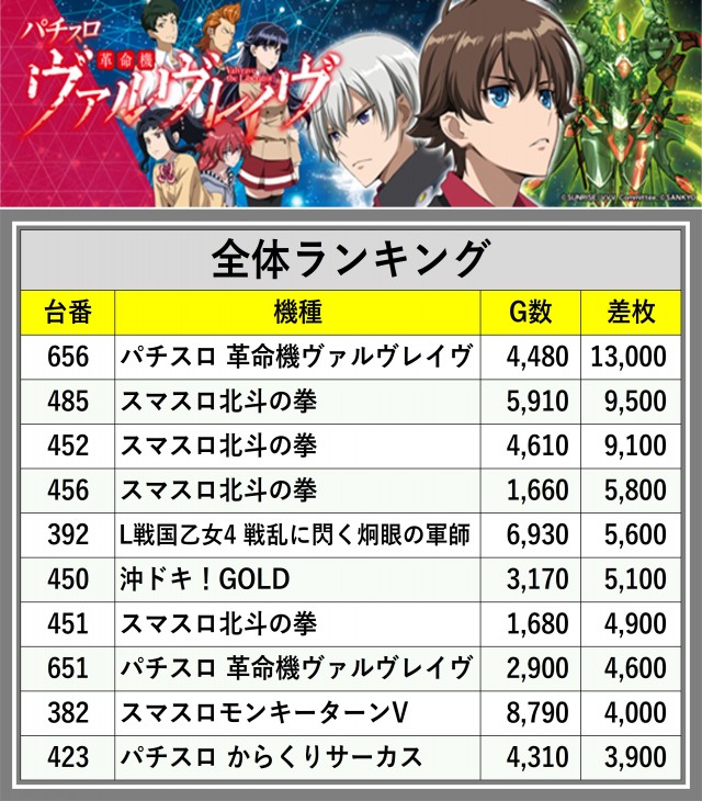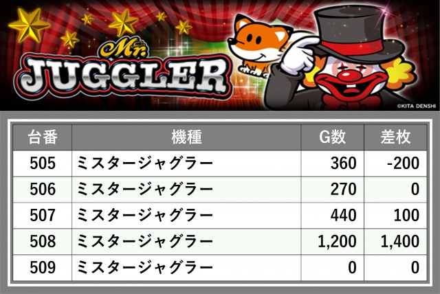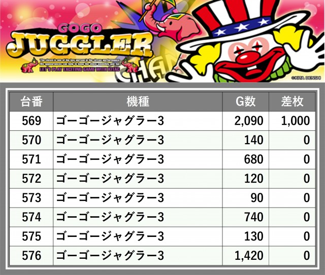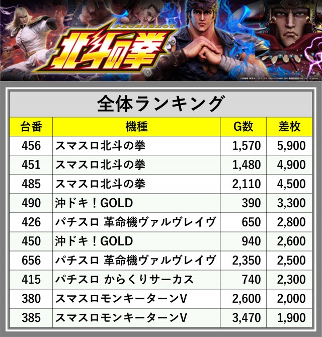 厳選された取材対象機種をはじめ、その他スロット全体から好記録が飛び出した!プレイヤーが楽しんだ1日を下記データにて振り返ってみて欲しい。