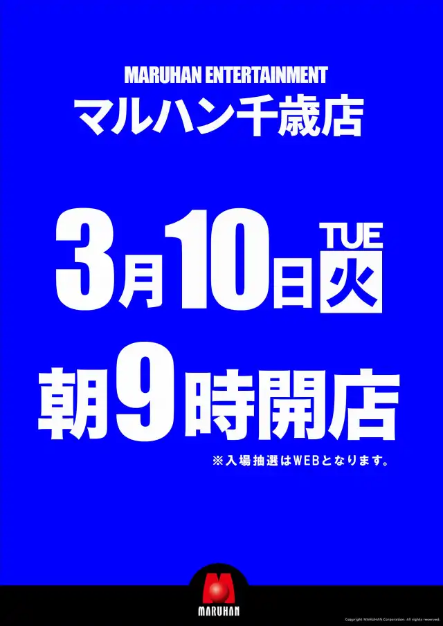 3/27(日)朝9時開店 ※8時30分入場抽選実施予定