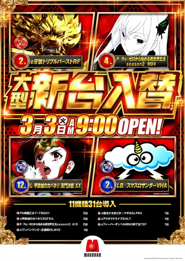 8月3日(水) 新台入替 10機種46台導入予定!
