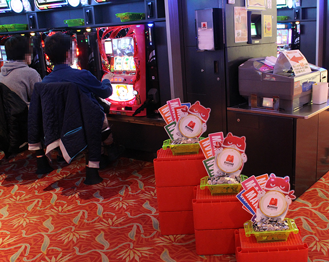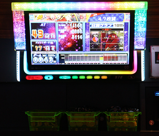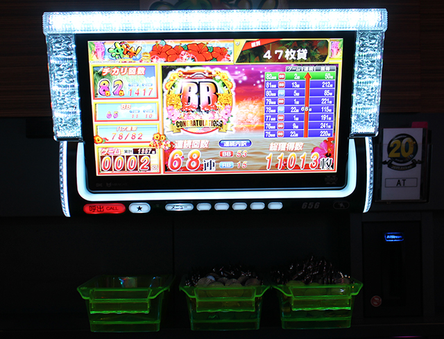 いまだに根強い人気を誇っている『ミリオンゴッド-神々の凱旋-』と『アナザーゴッドハーデス-奪われたZEUSver.-』のシマでは、通路に持ち玉がズラ~リ!