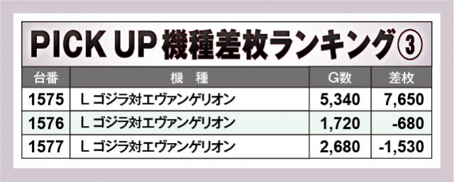 『スマスロ北斗の拳』はじっくりと打ち込まれた形跡が顕著で、遊技していたファンは相当な手応えを感じていたのではないだろうか。万回転OVERという目に見える数字も確認でき、ポテンシャルを秘めていたのは間違いない。そして『L ゴジラ対エヴァンゲリオン』『パチスロ からくりサーカス』は7,000枚OVERと熱気が放たれ、やはりこちらも熱量の面で盛り上がりに貢献していたようだ。