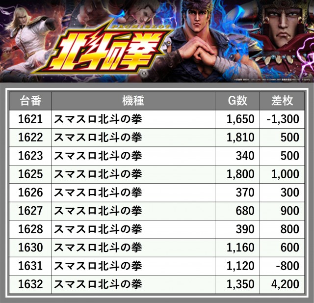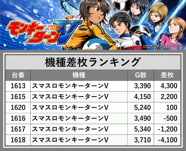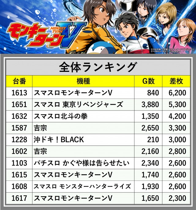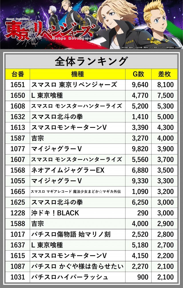 ※差枚数順に掲載しています