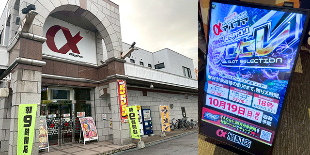 10月19日(日)アルファ旭町店にて、DMMぱちタウンの新感覚取材「スロセレ」を実施。