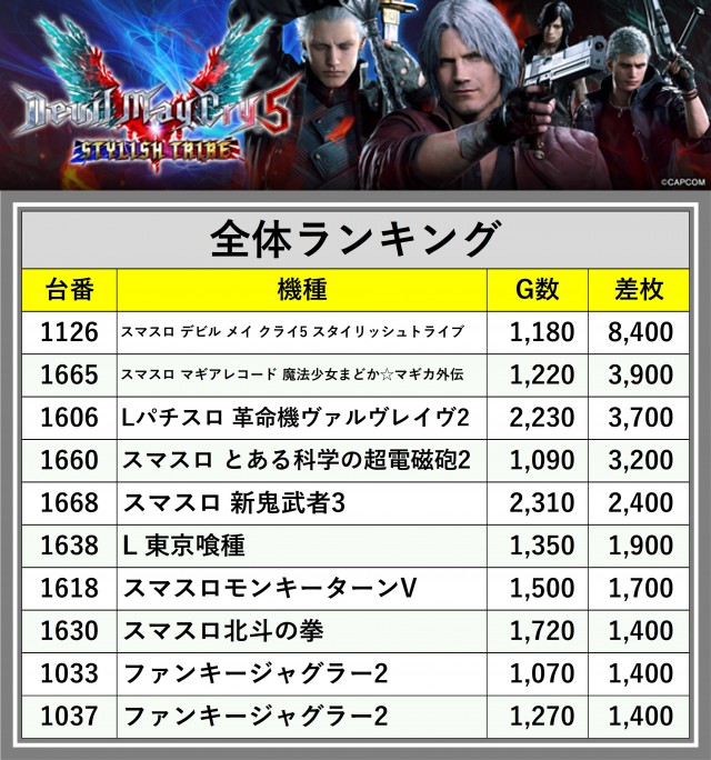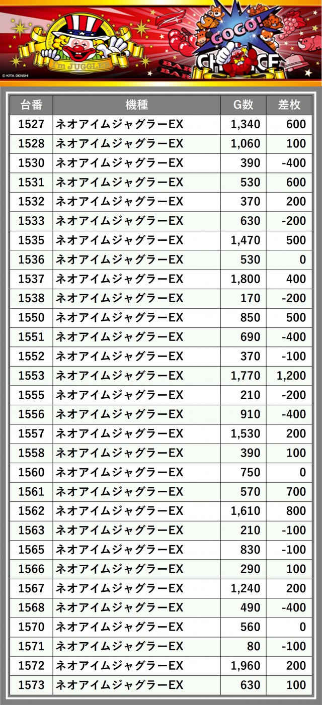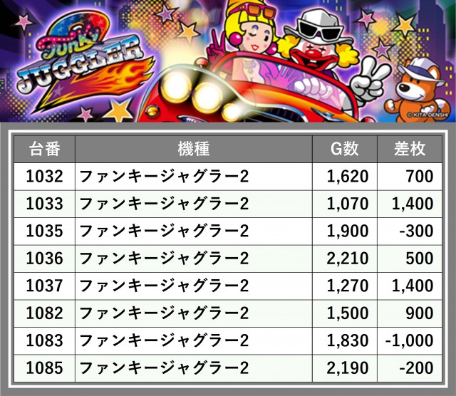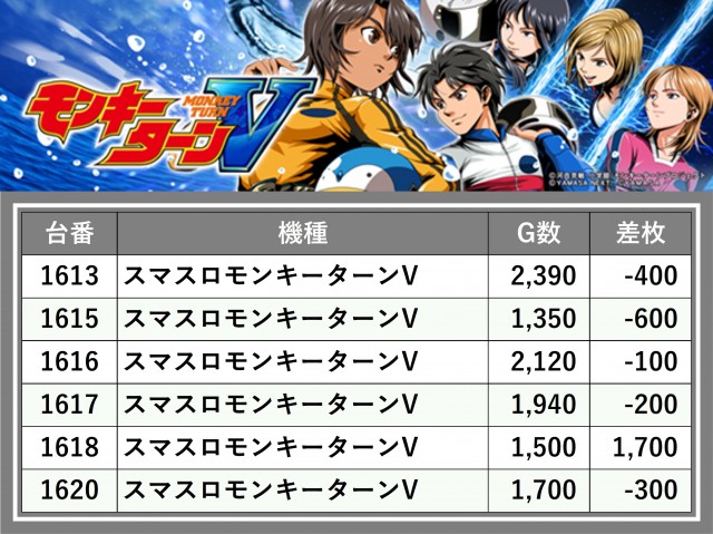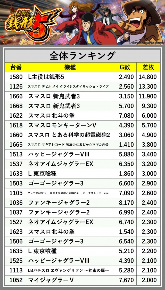厳選された取材対象機種をはじめ、その他スロット全体から好記録が飛び出した!プレイヤーが楽しんだ1日を下記データにて振り返ってみて欲しい。