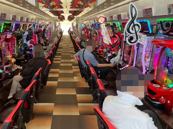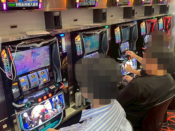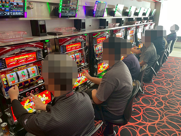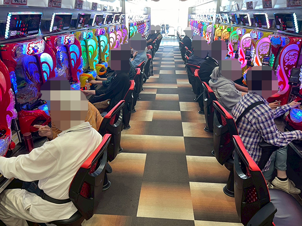 取材時は多くのプレイヤーが来店。パチンコ・パチスロともに、様々な機種が支持を得ていた。