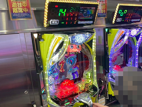 「ネオアイムジャグラーEX」や「スマスロモンキーターンV」、「L アズールレーン THE ANIMATION」などで機種性能を最大限に発揮するプレイヤーを確認。周囲から注目を集めていた。