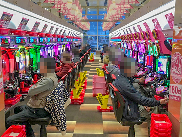 取材時は既に多くのプレイヤーであふれており、パチンコ・パチスロを問わず楽しげな表情でいっぱいだった。