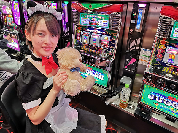 すでに活況となっているなかで、まみちゃんは「ハッピージャグラーVⅡ」で実戦です!