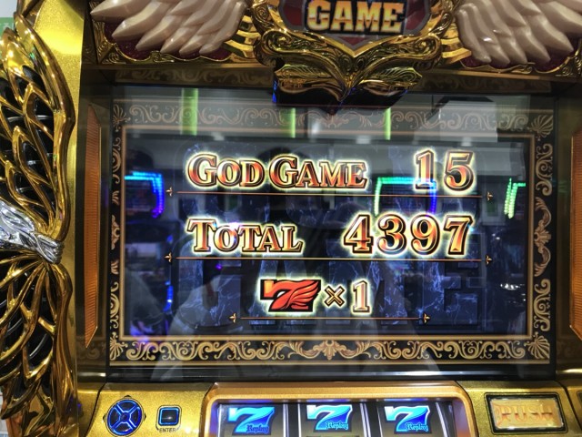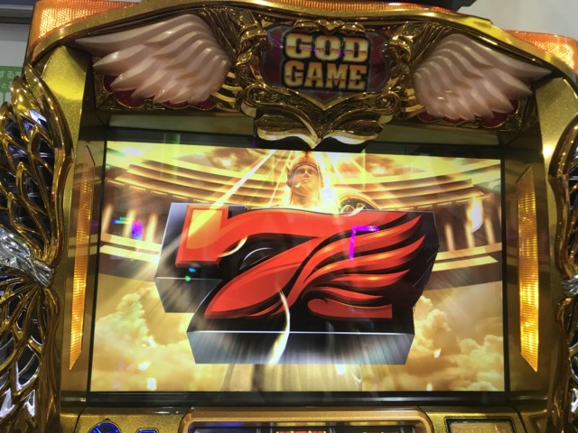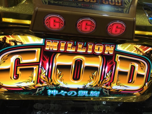 何とれるかな~と店内に入ってみると、『ミリオンゴッド-神々の凱旋-』が空いていたので即確保しました。