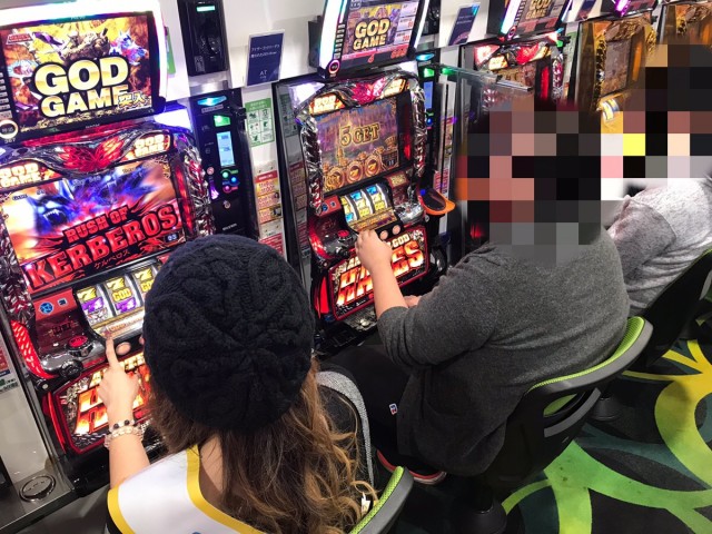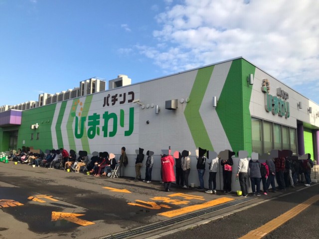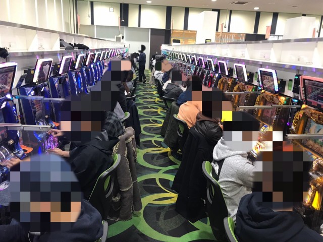 狙い台だった『ミリオンゴッド-神々の凱旋-』も、かなり良い挙動をしている台が数台あり、朝早くから並ばれていたユーザーさんが粘っている様子。
