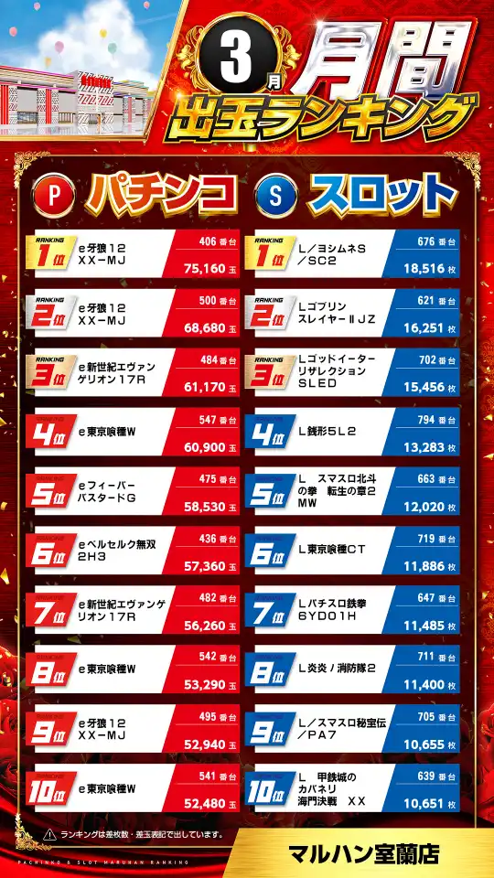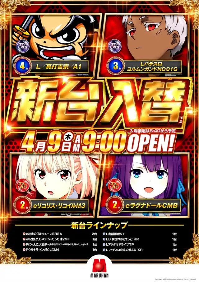 【マルハン室蘭店】本日リニューアルオープン※抽選9時20分※