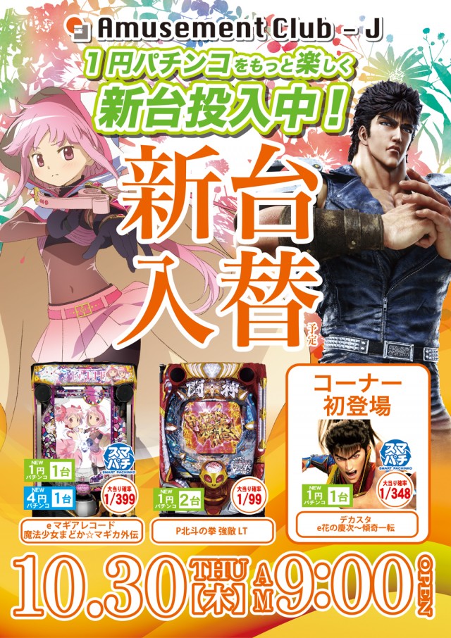 クラブJ藤野です 明日9時 新台OPEN お待ちしてます😀
