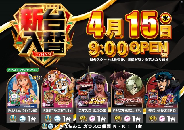 4月15日(水)新台入替(予定)