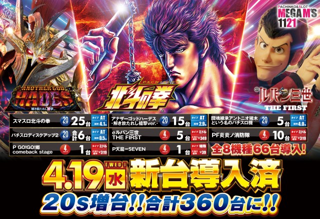 4/20(木)9:00開店♪スマスロ北斗導入&20S増台済み