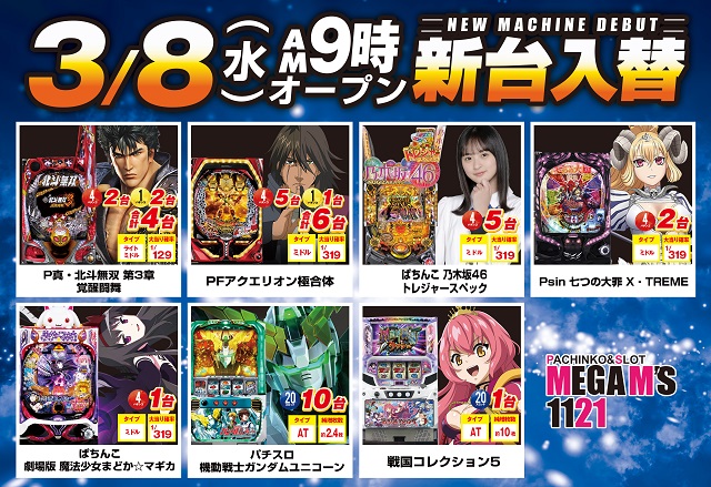 MEGA M’S1121 明日新台入替!!9:00開店♪