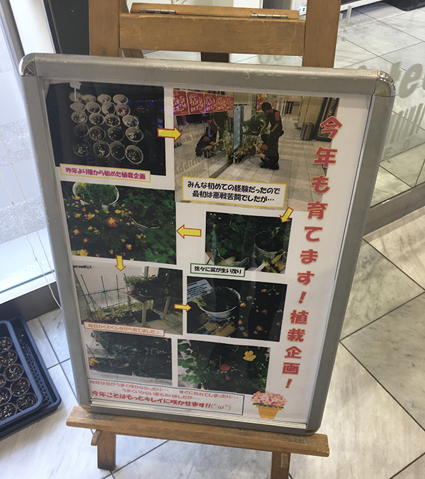 店内をみわたしてみると、植物の苗を発見。昨年の成長過程が書かれたパネルもあり、スタッフが丁寧に育てていたこともうかがえた。