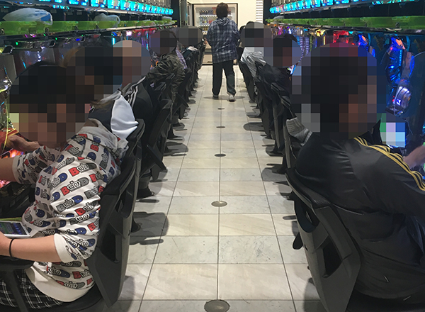 ひじかけが付いているイスや遊技台にUSBの差し込み口が設置されていることなど、快適に遊技をおこなえる設備も整っている「イーグルスクエア」。