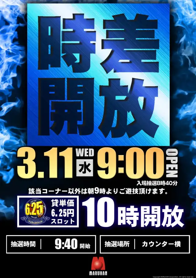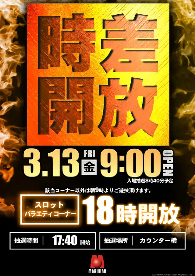 新台入替 3月23日(木) 朝9時開店 ※入場抽選は8:40