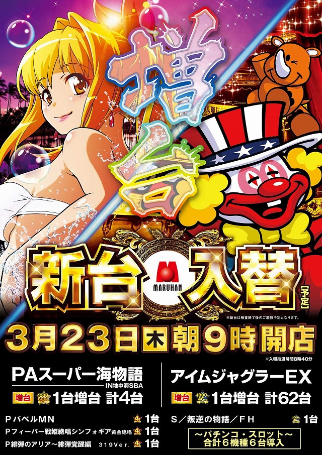 新台入替 3月23日(木) 朝9時開店 ※入場抽選は8:40