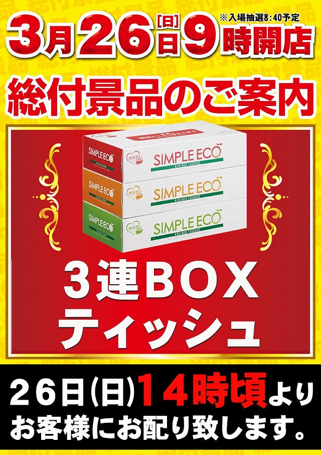 総付景品配布!26日(日)朝9時開店※入場抽選8:40予定