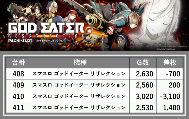 厳選された取材対象機種をはじめ、その他スロット全体から好記録が飛び出した!プレイヤーが楽しんだ1日を下記データにて振り返ってみて欲しい。