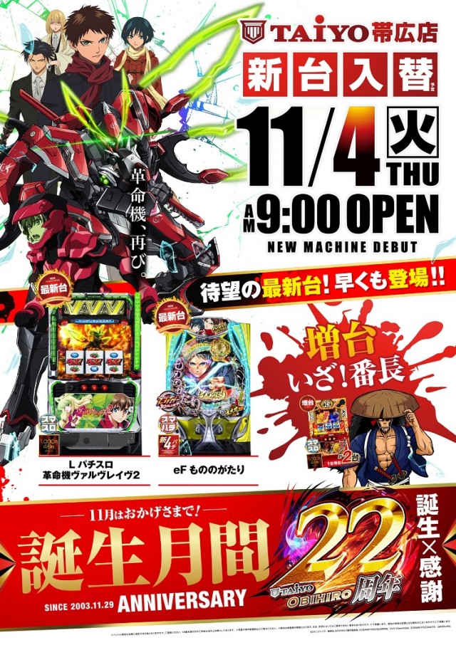 明日11/19新台入替9時開店!最新台含む2機種導入予定!