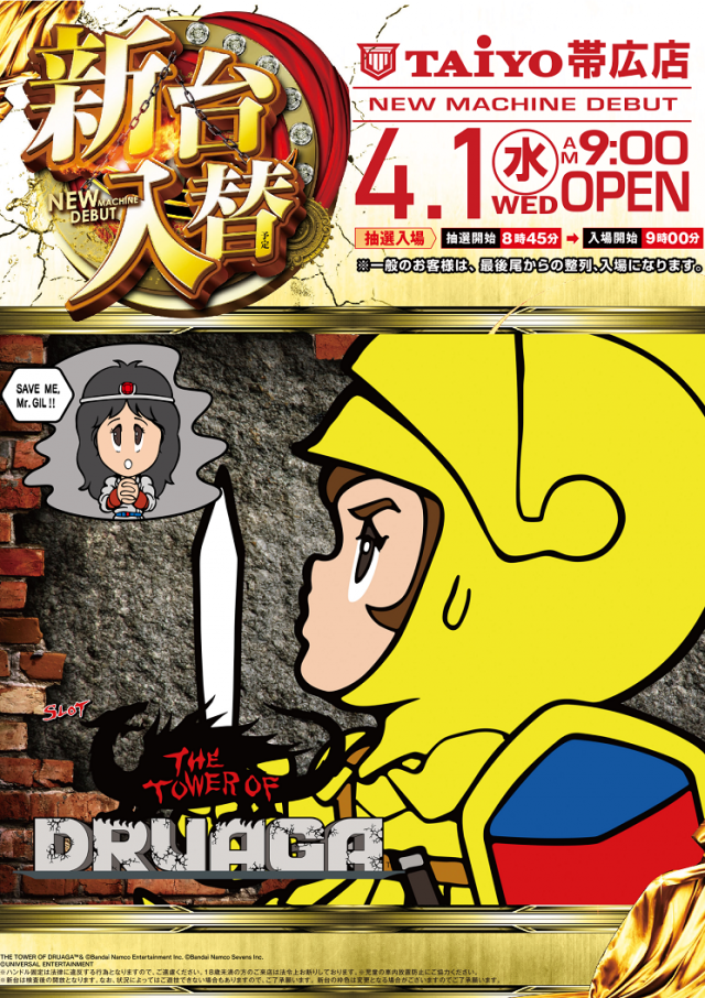 明日4/1新台入替9時開店!! Lドルアーガの塔導入予定!!