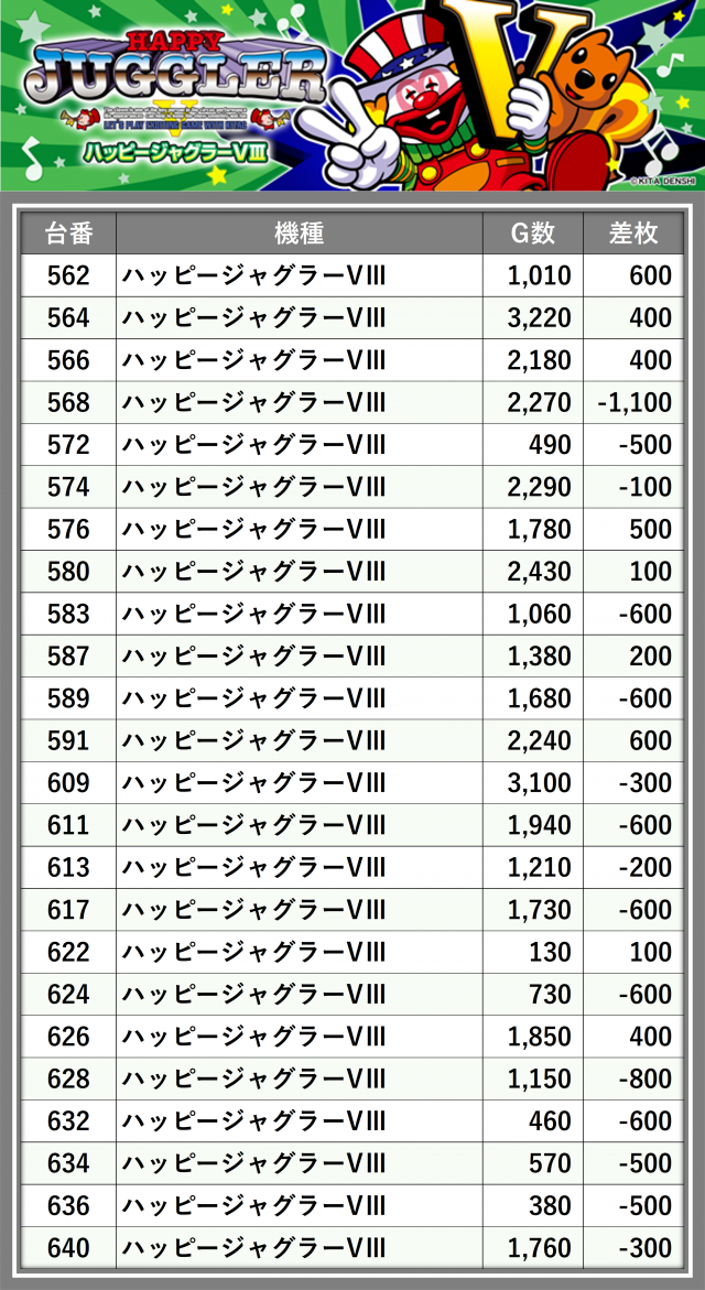 ※台番順に掲載しています