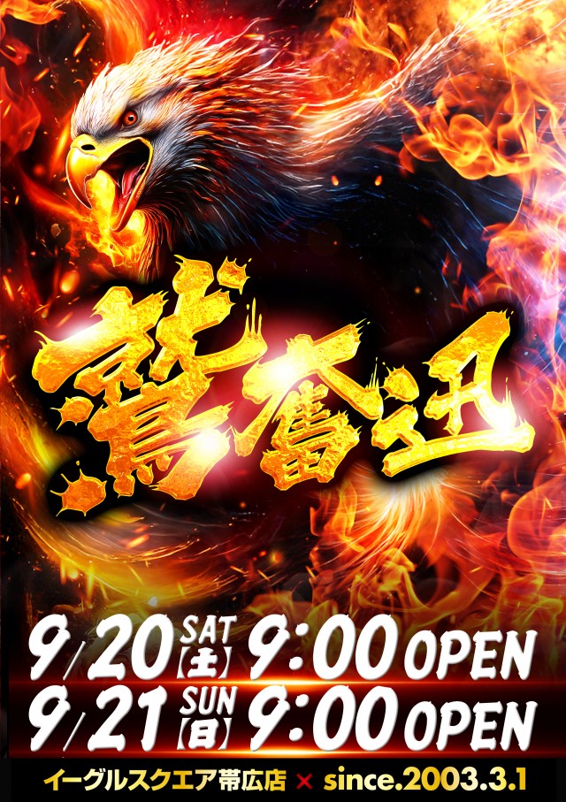 【鷲ノ領域】9月19日9時開店 8:45抽選開始