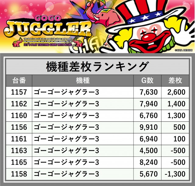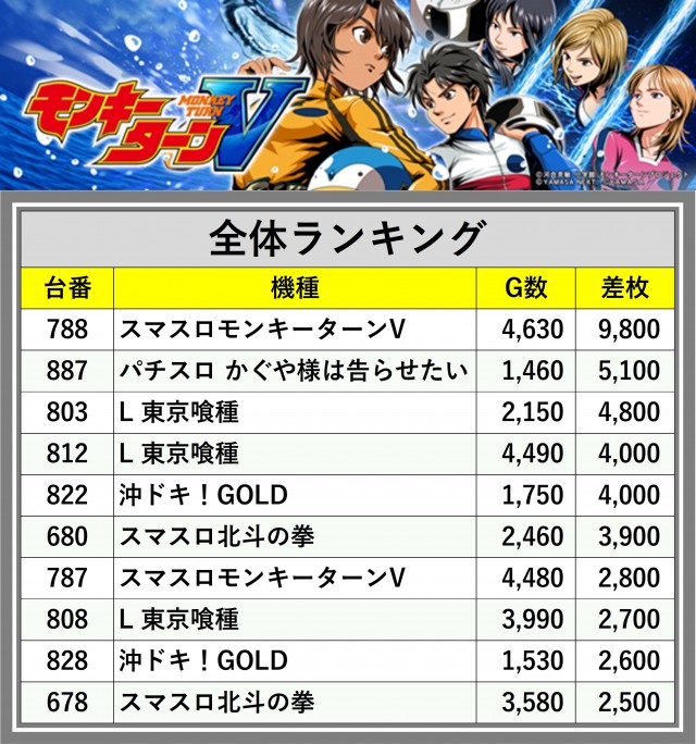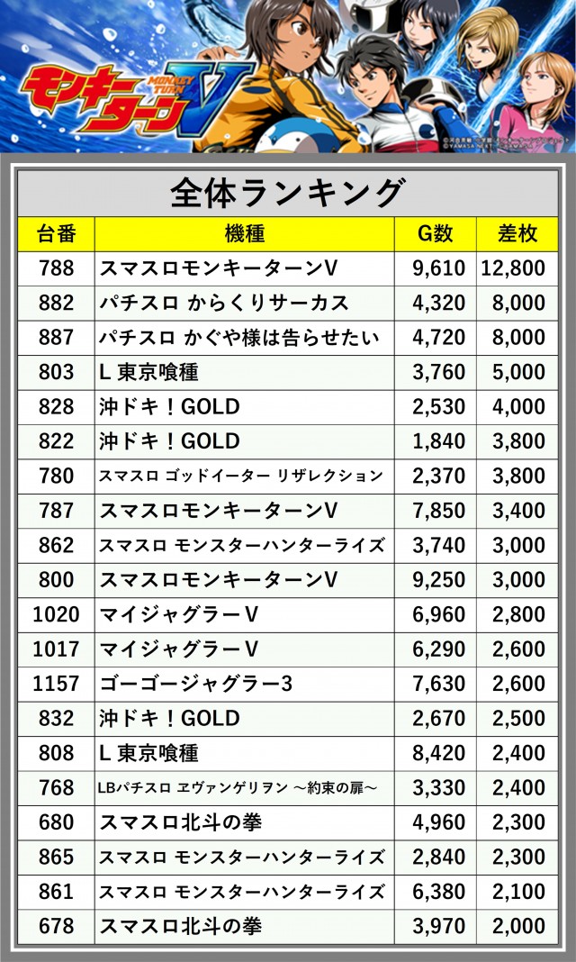 厳選された取材対象機種をはじめ、その他スロット全体から好記録が飛び出した!プレイヤーが楽しんだ1日を下記データにて振り返ってみて欲しい。