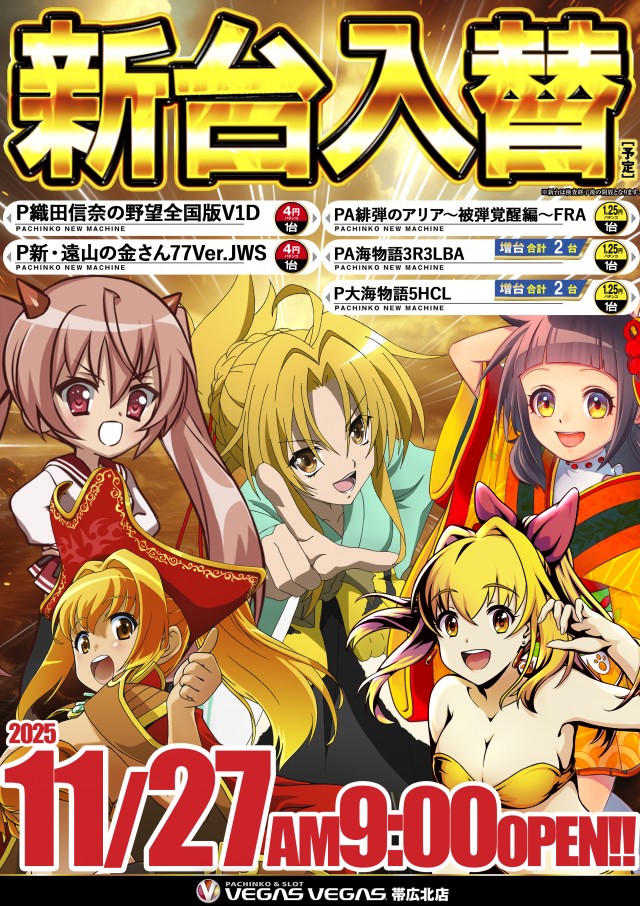 11月25日ベガスベガス帯広北店!!朝9時開店!!