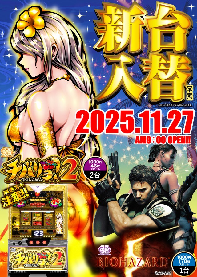 11月27日 時差開放&新台入替予定!!