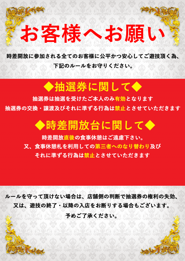 抽選締め切り8:45 以降一般並び |