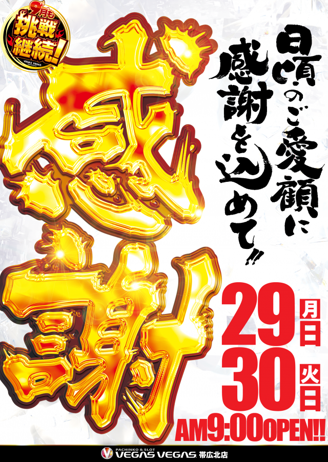 9月25日ベガスベガス帯広北店!!朝9時開店!!